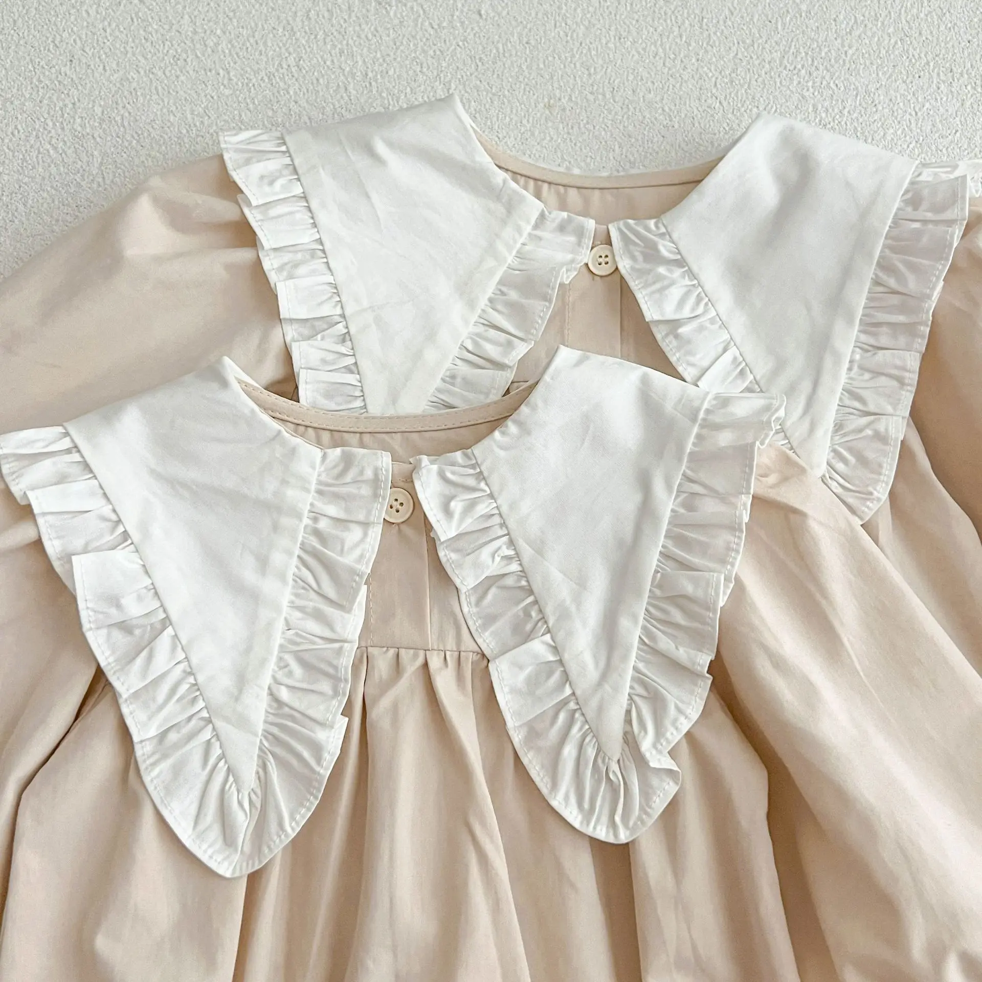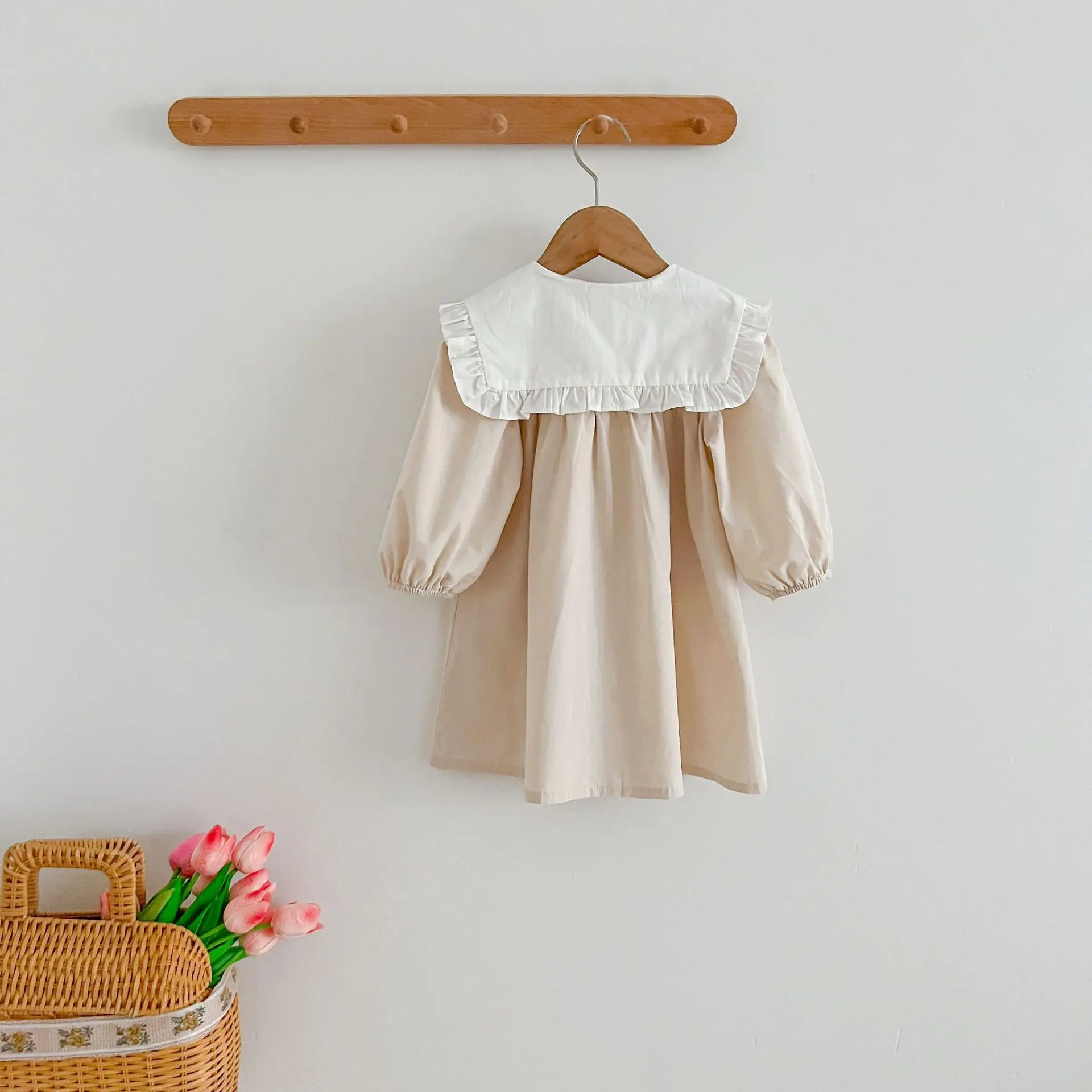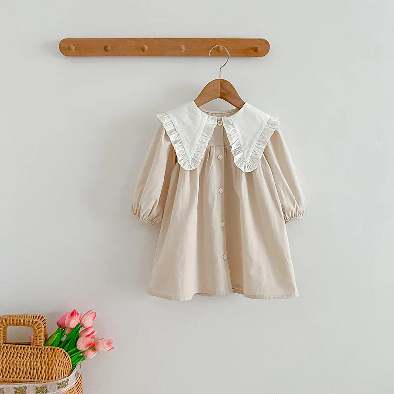 Autumn Spring Clothes for Kids Girl Dress Casual 1-6Y Princess Dress with Collar Long Sleeves Solid Pattern Button for Toddlers